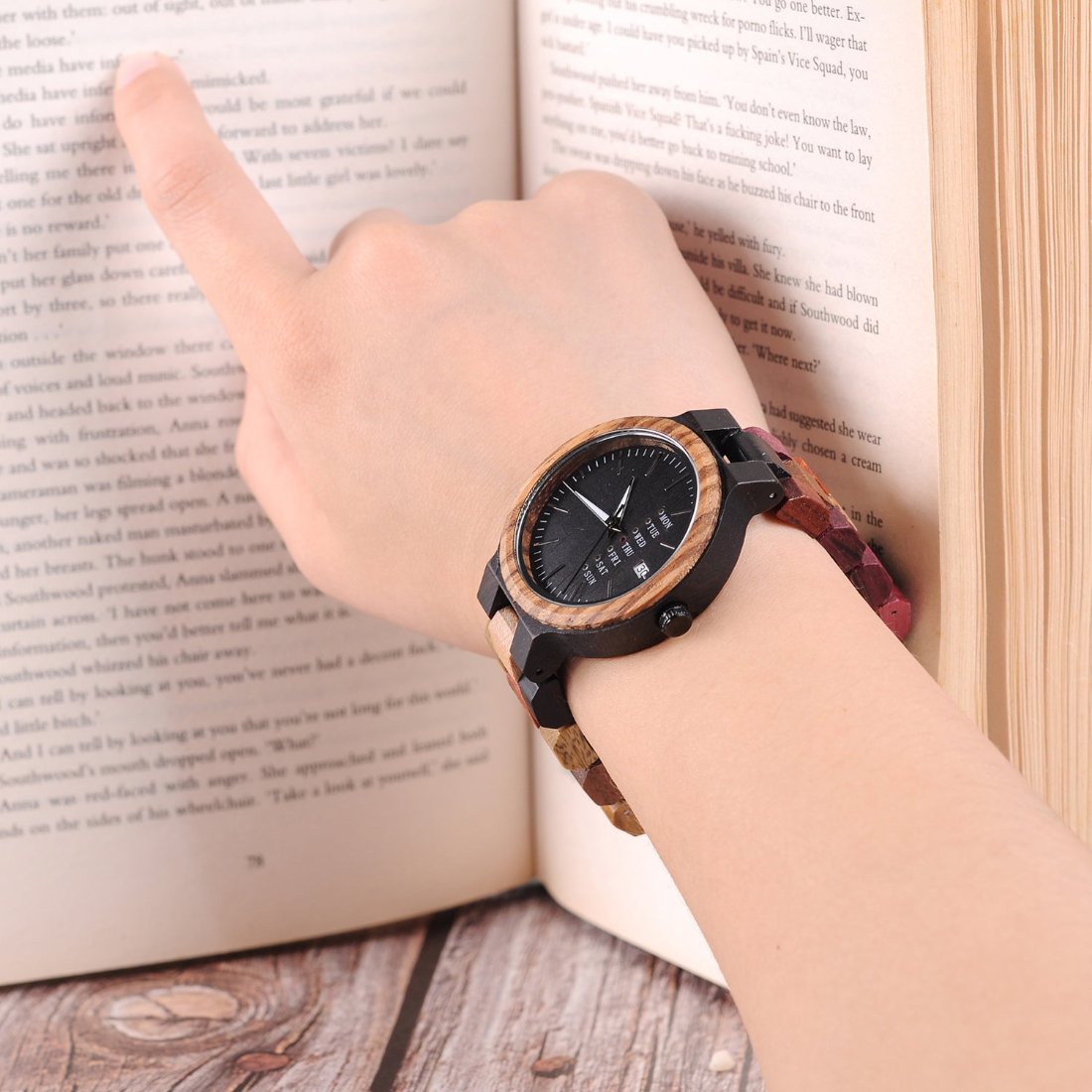 Un reloj de madera es ideal para la persona perspicaz que aprecia piezas únicas. Luce con estilo mientras mantienes el control de tus días con este reloj de madera único, que cuenta con una banda ajustable de madera multicolor que resalta el grano natural. La agenda también incluye un cilindro de bambú hecho a mano para su cuidado.
