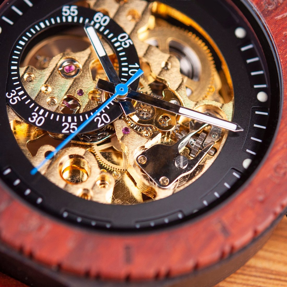 Un reloj de madera es ideal para la persona perspicaz que aprecia piezas únicas. Esta actualización moderna del estilo steampunk clásico será un tema de conversación cada vez que lo uses. Cuenta con una banda de madera ajustable que muestra su hermoso grano natural. El Mecánico funciona con un movimiento japonés de auto-viento automático, lo que elimina la necesidad de batería. Viene con un cilindro de bambú hecho a mano para guardarlo de forma segura.