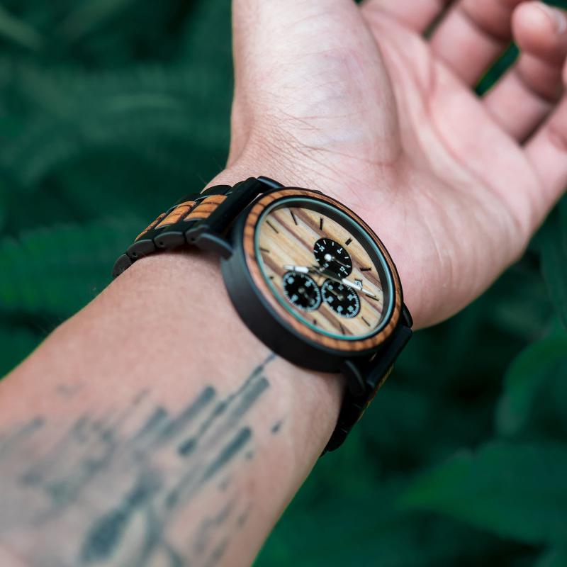 A wood watch is perfect for the discerning individual who values one-of-a-kind pieces. This sleek metal and wood watch is designed to turn heads while keeping precise track of time. Featuring an adjustable metal and wooden band that beautifully showcases its natural wood grain. The Chronometer also comes with a handmade bamboo cylinder for elegant storage.