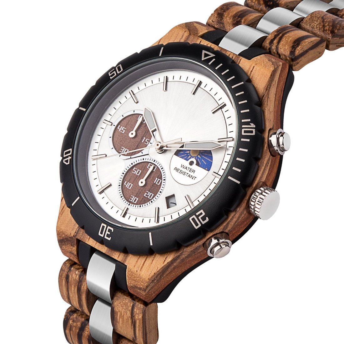 Un reloj de madera es ideal para la persona perspicaz que aprecia piezas únicas. Luzca con estilo mientras se mantiene al tanto de sus días con este reloj de madera único y artesanal. Tiene una banda de madera ajustable que muestra su grano de madera bellamente natural. El Calendario también viene con un cilindro de bambú hecho a mano.
